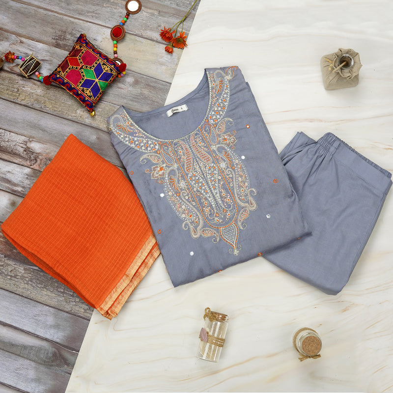 👚 Shirt: Grey embroidered lawn shirt for a sophisticated look