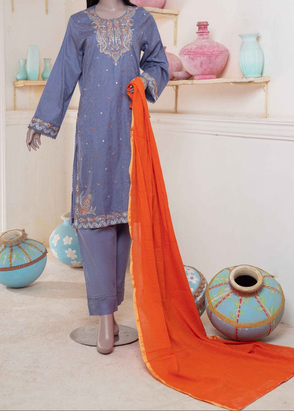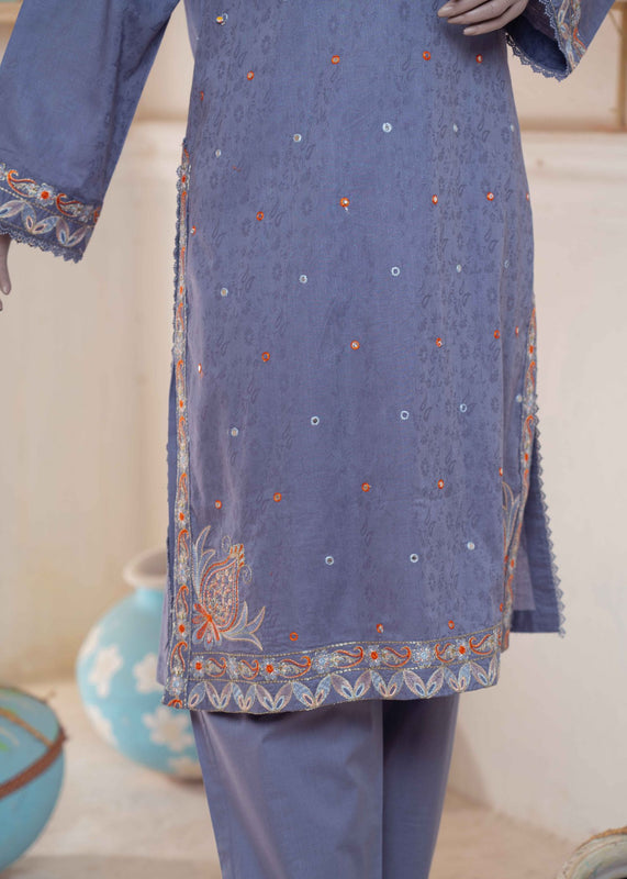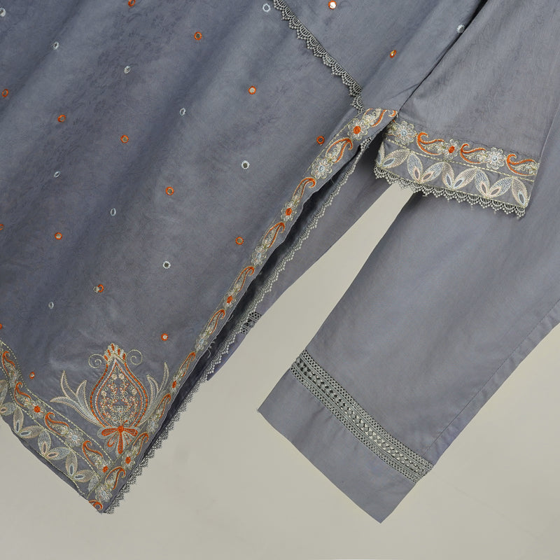 👚 Shirt: Grey embroidered lawn shirt for a sophisticated look